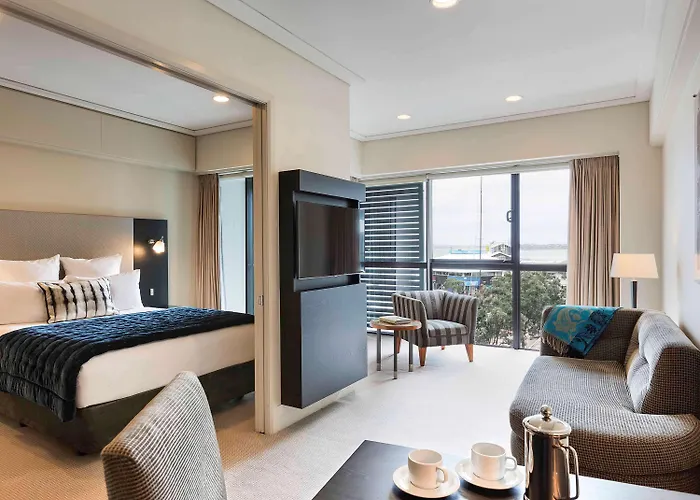 The Sebel Auckland Viaduct Harbour offers guests a stylish stay alongside the picturesque marina. This hotel features luxurious rooms and apartments, each with stunning views of the harbour and city skyline. With in-room kitchen facilities and nearby dining options, guests can easily prepare meals or dine out. The property includes a fitness studio for health-conscious travelers, and its central location keeps all of Auckland's shopping and entertainment areas within easy reach. Ideal for those wanting an upscale stay with convenience.